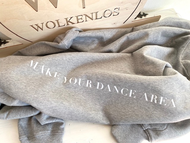 - grauer Sweater mit weißem Print